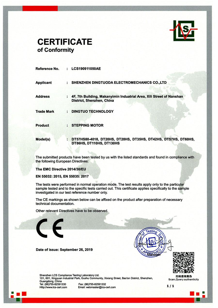 首頁->產品認證->步進電機CE認證證書