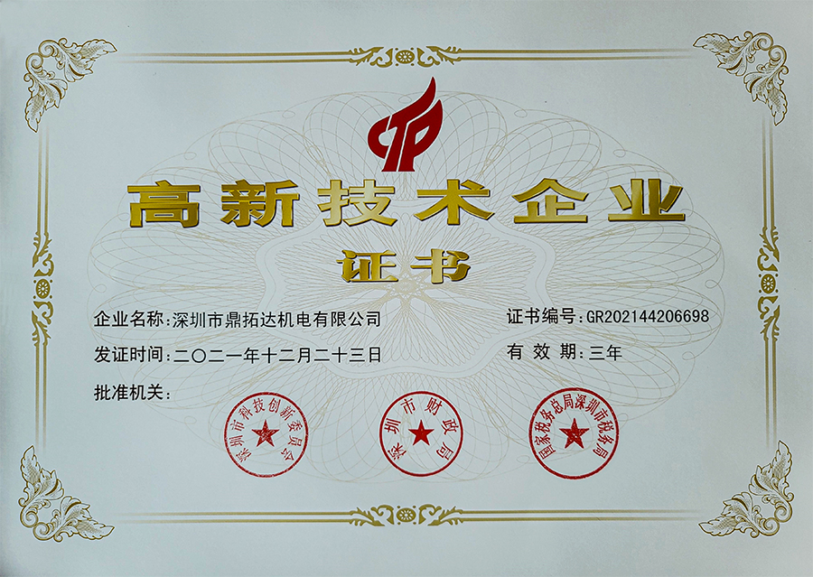 國家高新技術(shù)企業(yè)證書2006-2024 深圳市鼎拓達(dá)機(jī)電有限公司版權(quán)所有 粵ICP備05142847號 技術(shù)支持:神州通達(dá)網(wǎng)絡(luò)